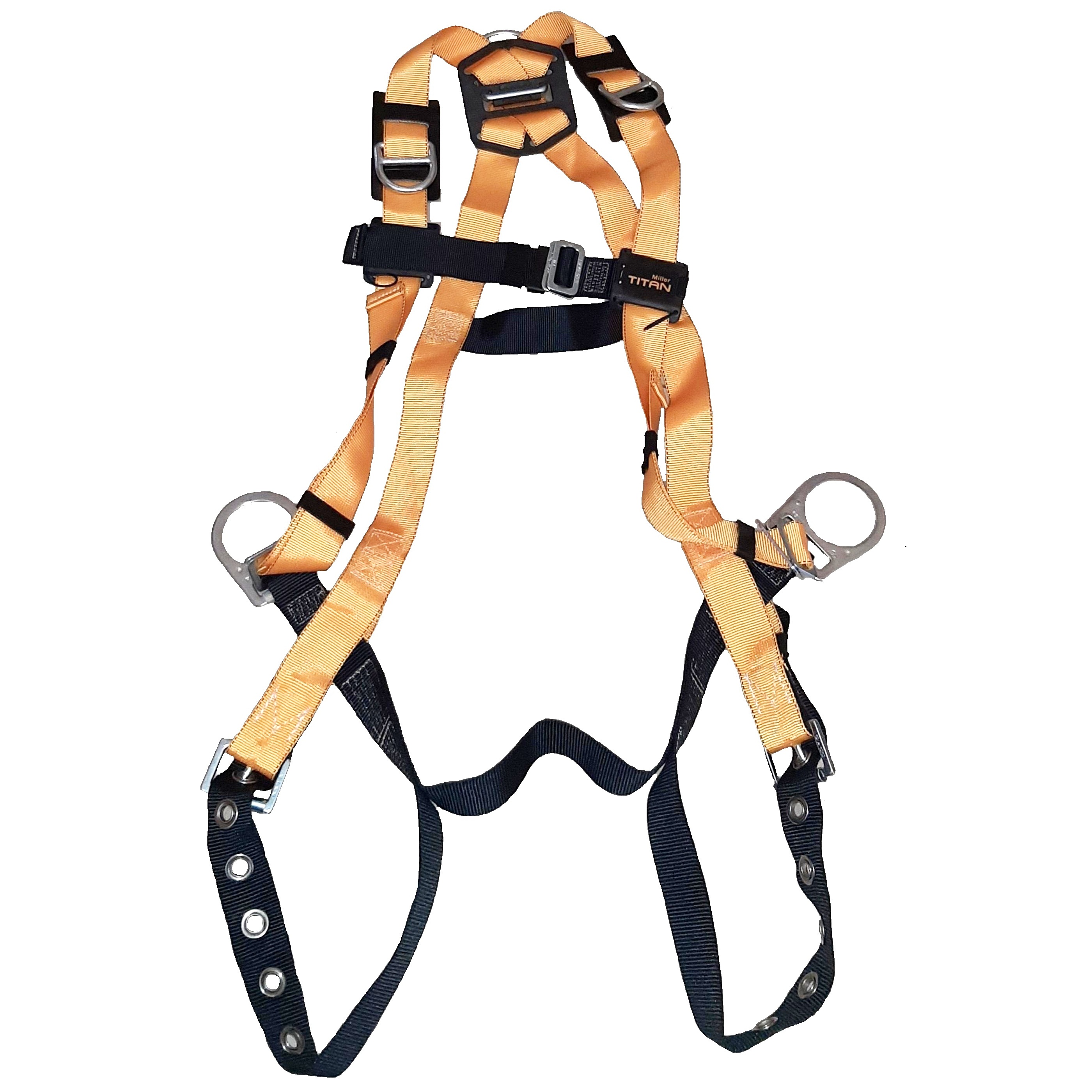 Cinta liviana y durable para brindar confiabilidad y comodidad para todo el día. Arnés no estirable, consta de correas de pecho, de hombro y para piernas con hebilla macho-hembra; correa subpélvica. Los colores brillantes de la cinta se ven fácilmente y mejoran el cumplimiento y la inspección
