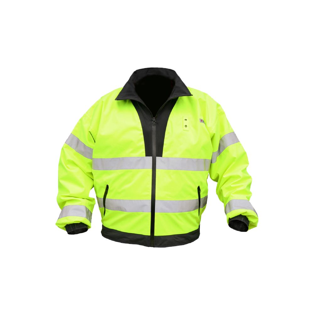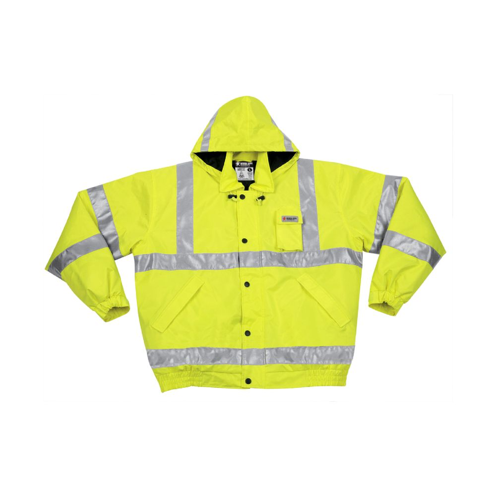 MCR Safety ha diseñado una amplia línea de productos de alta visibilidad que le permitirán encontrar el producto adecuado para su aplicación. La chaqueta bomber reversible BMRCL3L tiene características únicas que te harán destacar entre la multitud. Un lado tiene material de color lima de alta visibilidad con rayas reflejantes plateadas de 2 in. Cumple con los estándares de alta visibilidad ANSI Clase 3. Este lado está tratado con teflón que hace que el material repele líquidos, suciedad, arenilla y mugre. Dale la vuelta a esta chaqueta y podrás usarla como una chaqueta negra. El color negro oculta la suciedad y le ofrece una opción cuando no se requiere alta visibilidad. Ambos lados cuentan con una etiqueta para la insignia y dos bolsillos con cremallera. El cierre frontal con cremallera y la capucha con cremallera oculta hacen de esta chaqueta una elección perfecta.Chaqueta Impermeable.